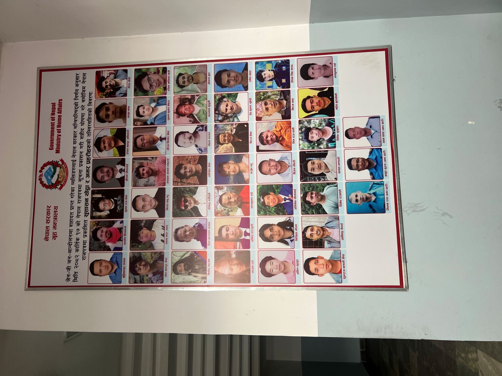 यहाँका अनुहारहरू केवल तस्बिर मात्रै होइनन्, यी त आशा, विद्रोह र बलिदानका साक्षी हुन् । भित्तामा टाँसिएका यी तस्बिरलाई नियाल्नुभयो भने अझै पनि ठूलो आवाजमा केही भनिरहेका जस्तो लाग्छ—हामीले दिएको बलिदानलाई बिर्सिनु त हुने छैन ! बाहिर हालैको जेनजी आन्दोलनमा सहिद भएकाहरू र भित्र गृहमन्त्री ओमप्रकाश अर्यालको टेबल अगाडि राष्ट्र निर्माता पृथ्वीनारायण शाह तस्बिर । यसले इतिहास र वर्तमान एउटै कोठामा भेटिएजस्तो लाग्छ । गृहमन्त्री अर्याल भन्नुहुन्छ,“यी दुवै तस्बिरले नेपालको इतिहास बोक्छन् ।