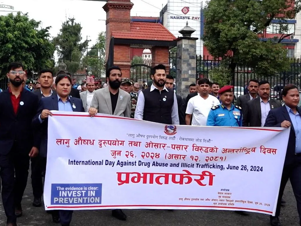 कार्यक्रमअघि भृकुटीमण्डपबाट लागुऔषधको अवैध ओसारपसार र सेवनविरुद्ध जनचेतनामूलक प्रभातफेरी निकालिएको थियो ।