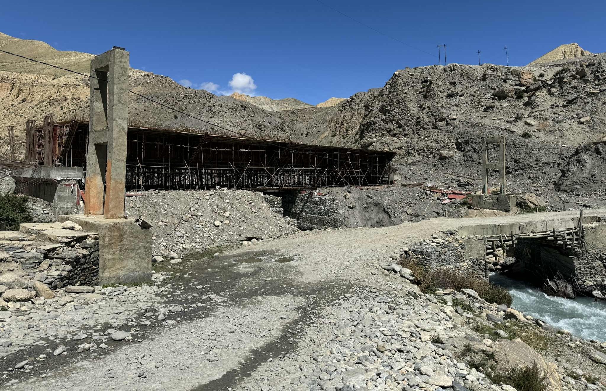 बाढीले क्षति पुर्याएको तीनतले झरनाको पुनर्निर्माण सुरु