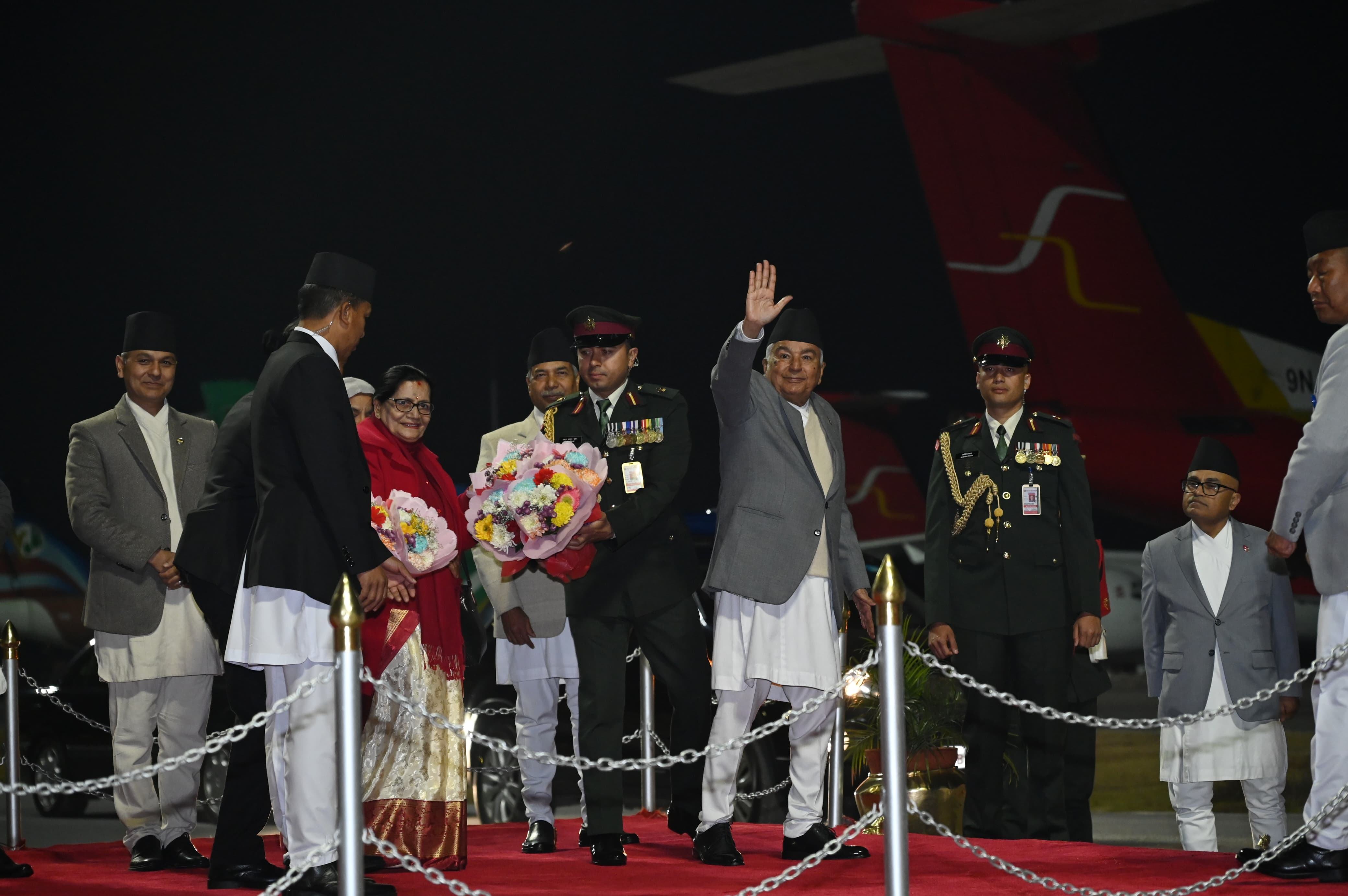 त्रिभुवन अन्तरराष्ट्रिय विमानस्थलको अति विशिष्ट कक्षमा उपराष्ट्रपति रामसहायप्रसाद यादव, प्रधानमन्त्री सुशीला कार्की, मन्त्रीगण, सुरक्षा निकाय प्रमुख, नेपाल सरकारका उच्च पदस्थ अधिकारी, नेपालका लागि जापानी राजदूतलगायतले राष्ट्रपति पौडेललाई बिदाई गर्नुभयो ।
